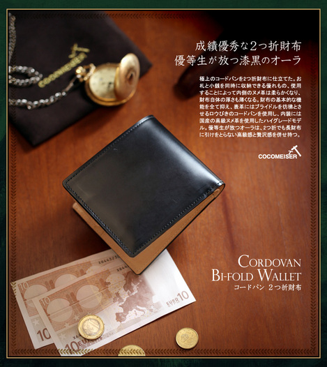 今回も数量が限られているようで、コードバン二つ折り財布の黒鹿毛のみです。